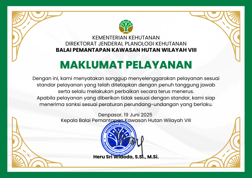 BPKH Wilayah VIII dalam melaksanakan pelayanan publik, telah sanggup menyelenggarakan pelayanan sesuai standar pelayanan yang telah ditetapkan dengan penuh tanggung jawab, serta selalu sadar dan terus menerus melakukan perbaikan, dan kami siap menerima sanksi apabila dikemudian hari pelayanan yang diberikan tidak sesuai dengan standar.